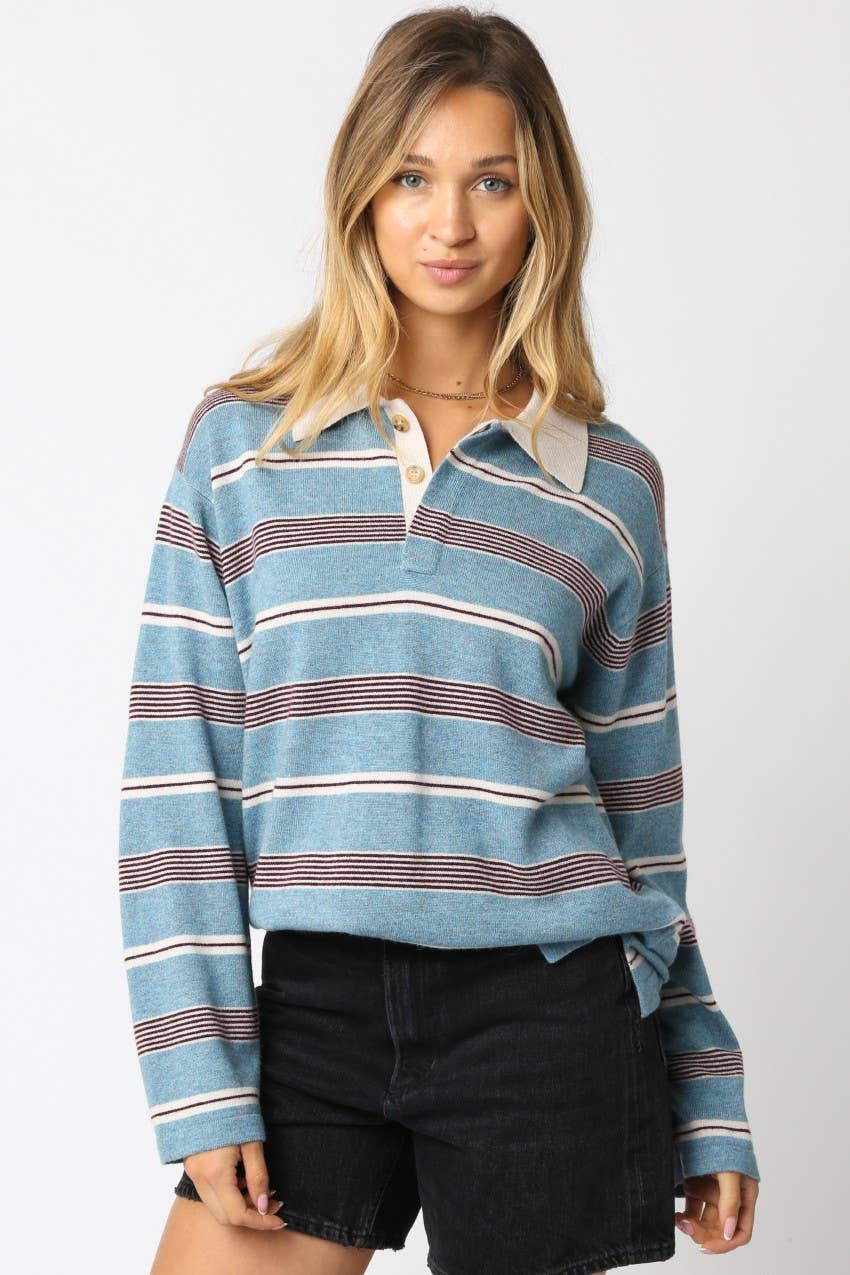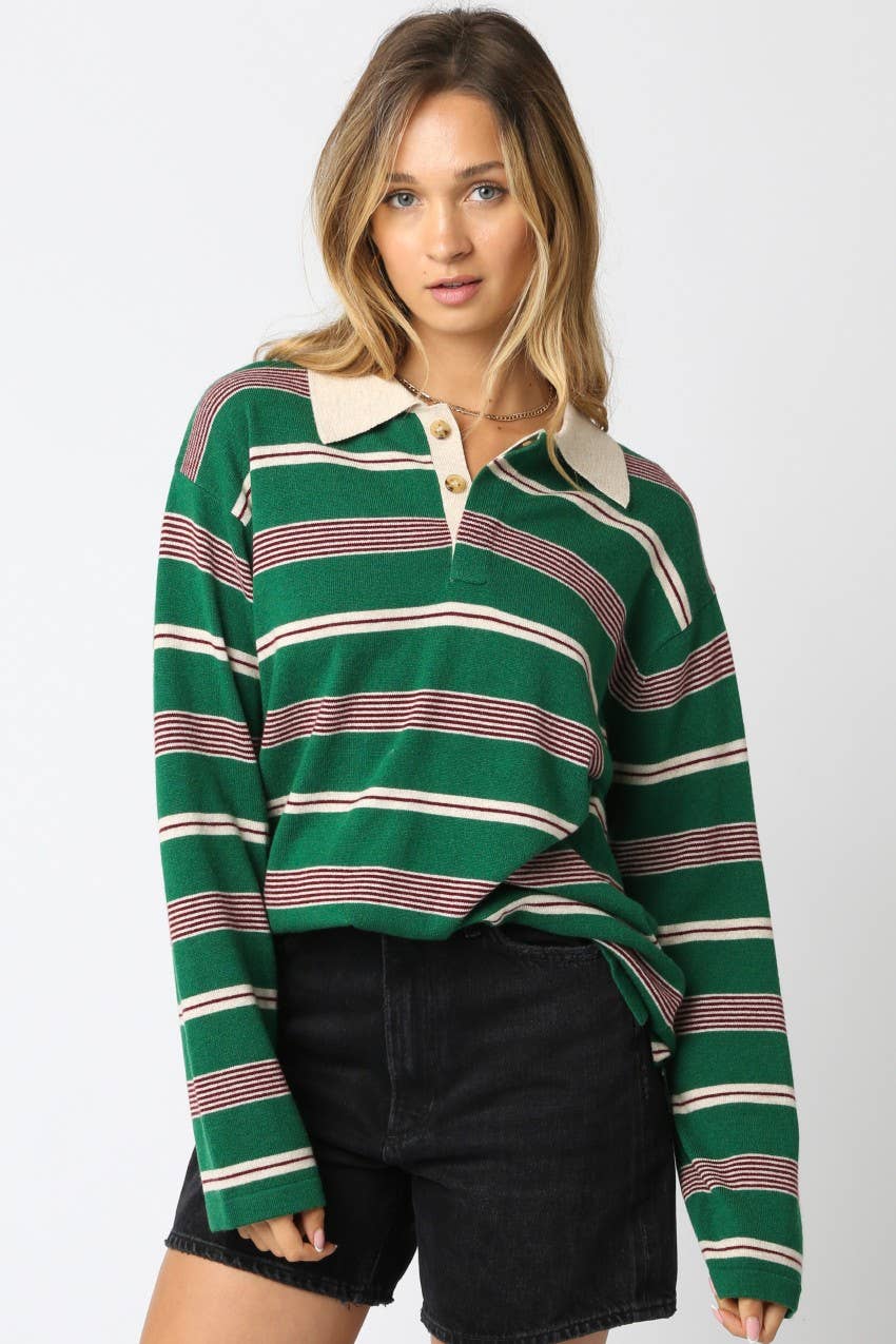 Our Cara Stripe Polo Sweater features a contrasting collar with a cashmere touch Knit