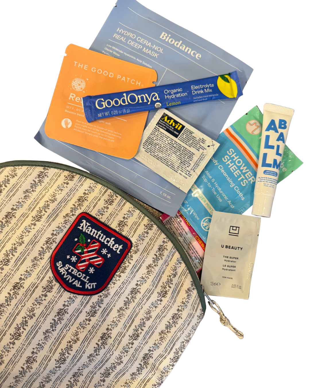 Stroll weekend is magical—but it’s also a marathon. From early-morning festivities to late-night cocktails, this all-in-one kit keeps you hydrated, revived, polished, patched up, and ready for whatever the island throws your way. Thoughtfully curated and packed in a For Now zippered pouch featuring our exclusive “Nantucket Stroll Survival Kit” patch, it’s the perfect blend of practical and pampering.