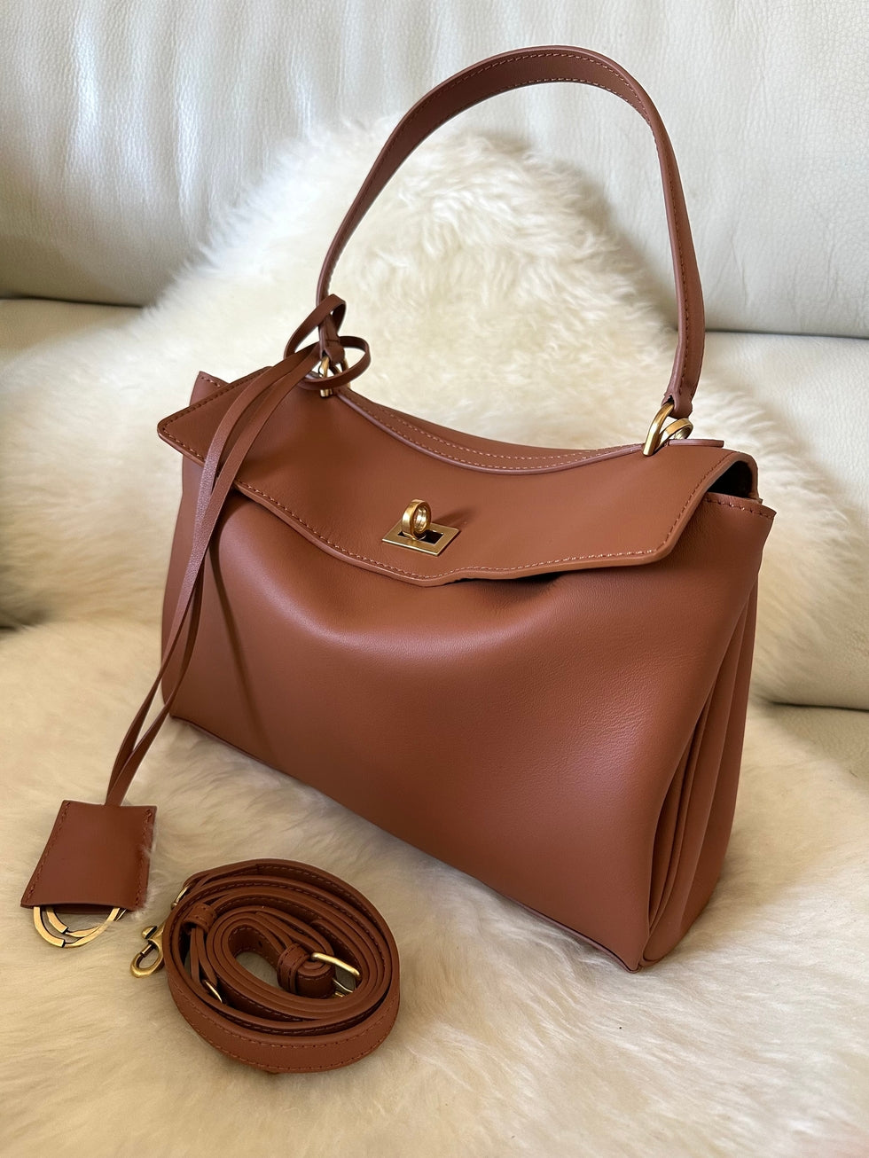 Handcrafted bag made from very soft, high-quality smooth calf leather. The bag has side buttons to make it more spacious.