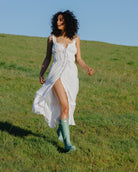 Meet Julia. This is a sweetheart neck, full length and fully-lined dress made from 100% cotton schiffli fabric. The elastic gathered bodice offers maximum comfort while the romantic ruffle straps complete this flattering silhouette. This summer ready style will be a go-to for wineries, picnics or your rehearsal dinner.