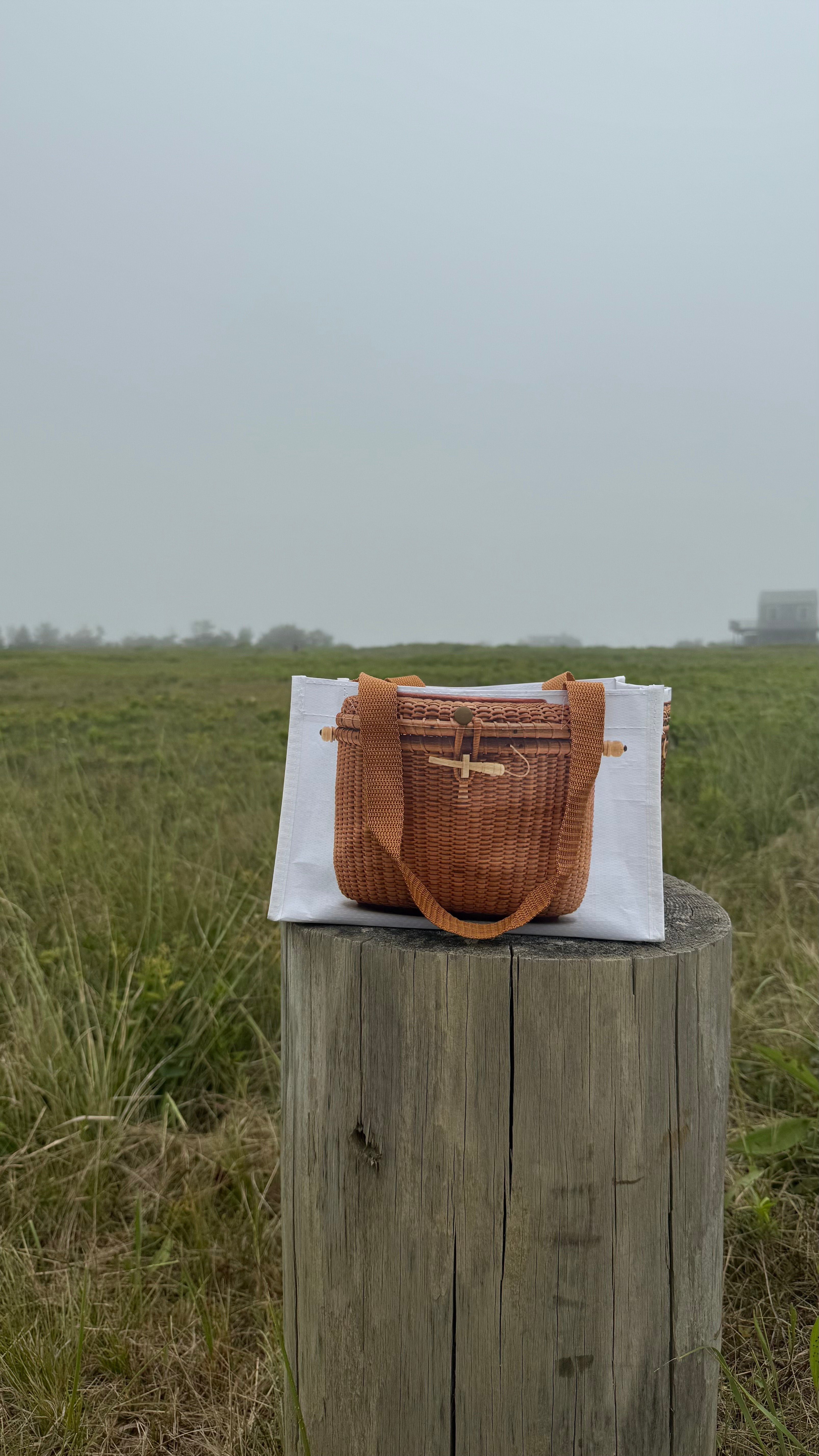 Introducing The ACK Sack, the island's first and only Lightship-basket-printed-tote. It's an heirloom for those without heirs. No worries if you spill your CruCumber on it -- it's completely waterproof and made to be dragged from Bartlett's, beach, Brewery, Box. Big enough to hold your daily essentials, small enough to bring out on the town.