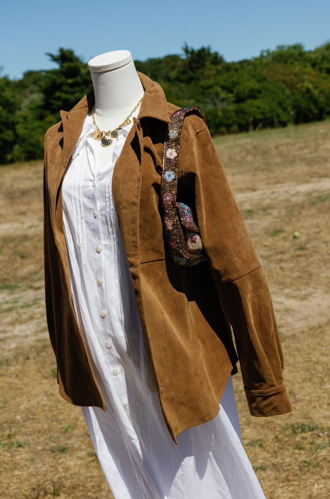 The Dean Jacket is polished enough to double as outerwear, soft enough for everyday layering, and timeless enough to stay in your closet for seasons to come. Wear it buttoned as a top, open as a jacket, or layered over just about anything.