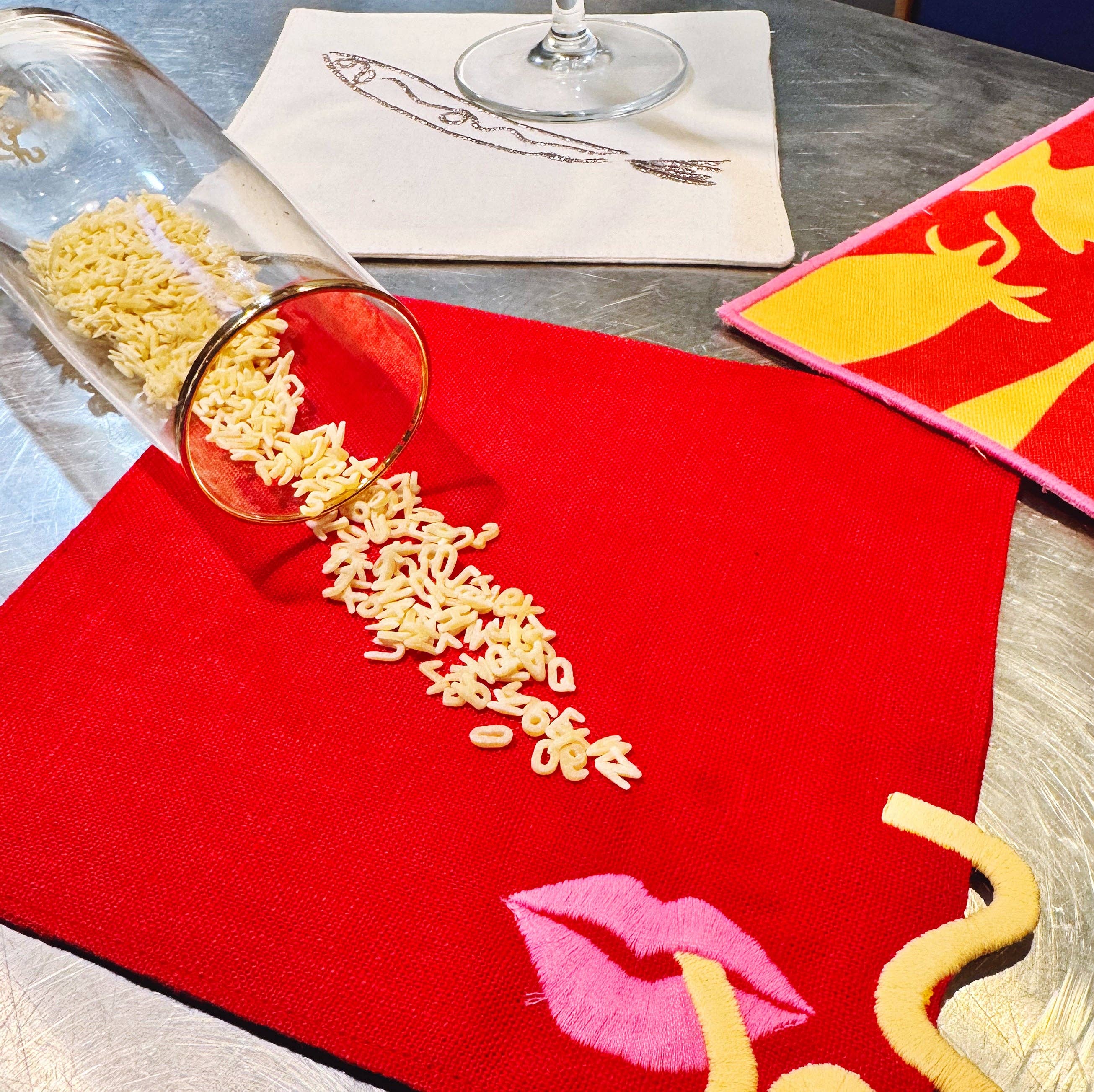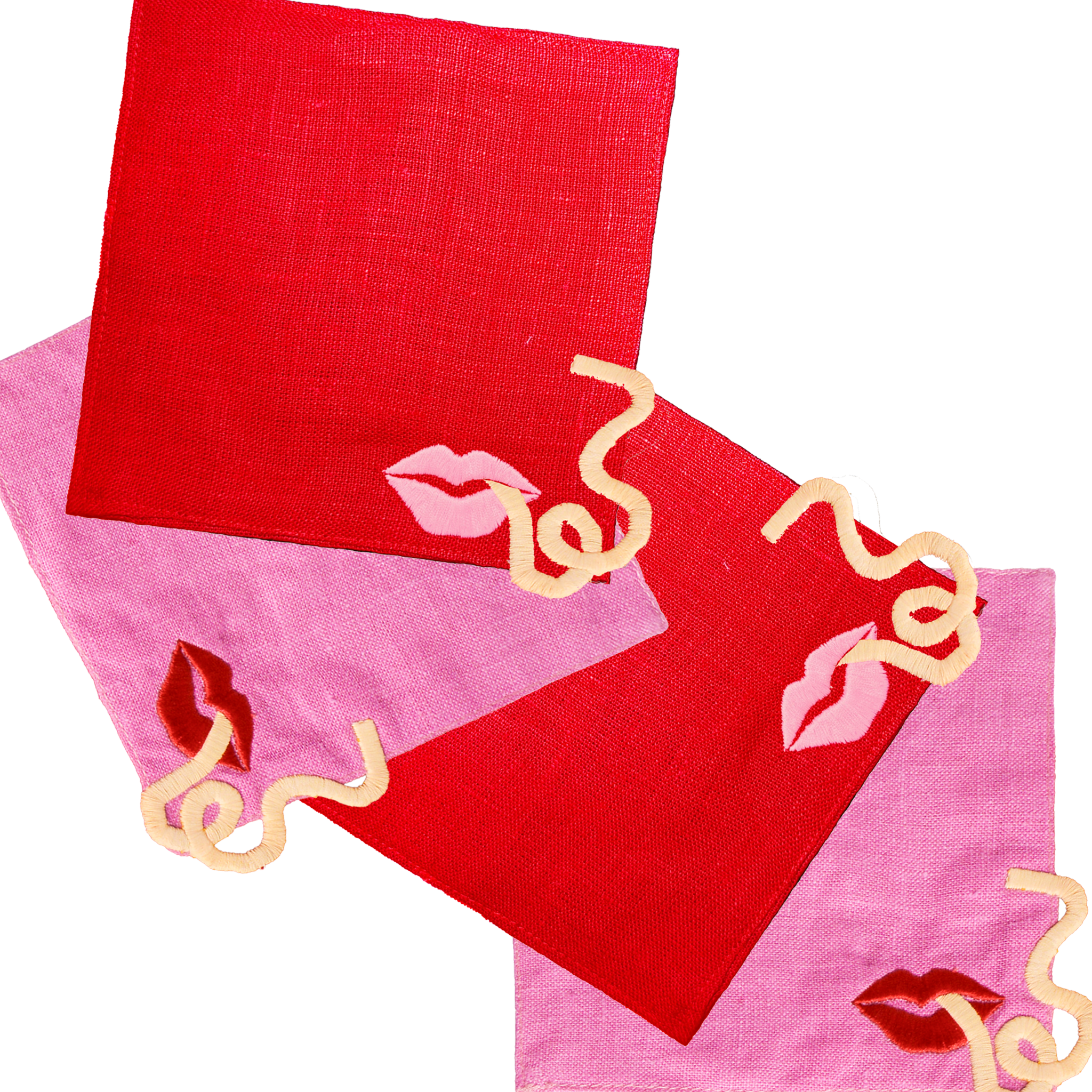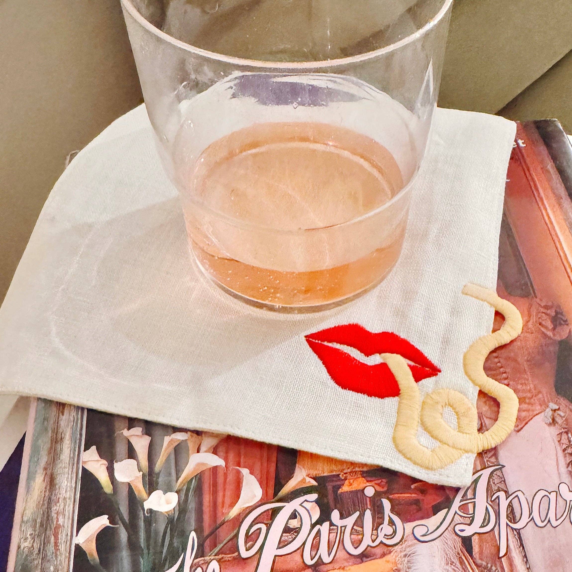 Our Pasta Slurp Linen Cocktail Napkins feature a playful lip and noodle embroidered design. With a magical effect being created by the noodle appearing to float off the napkin. These napkins are an ideal hostess gift and the perfect addition to any happy hour. Offered in sets of 2