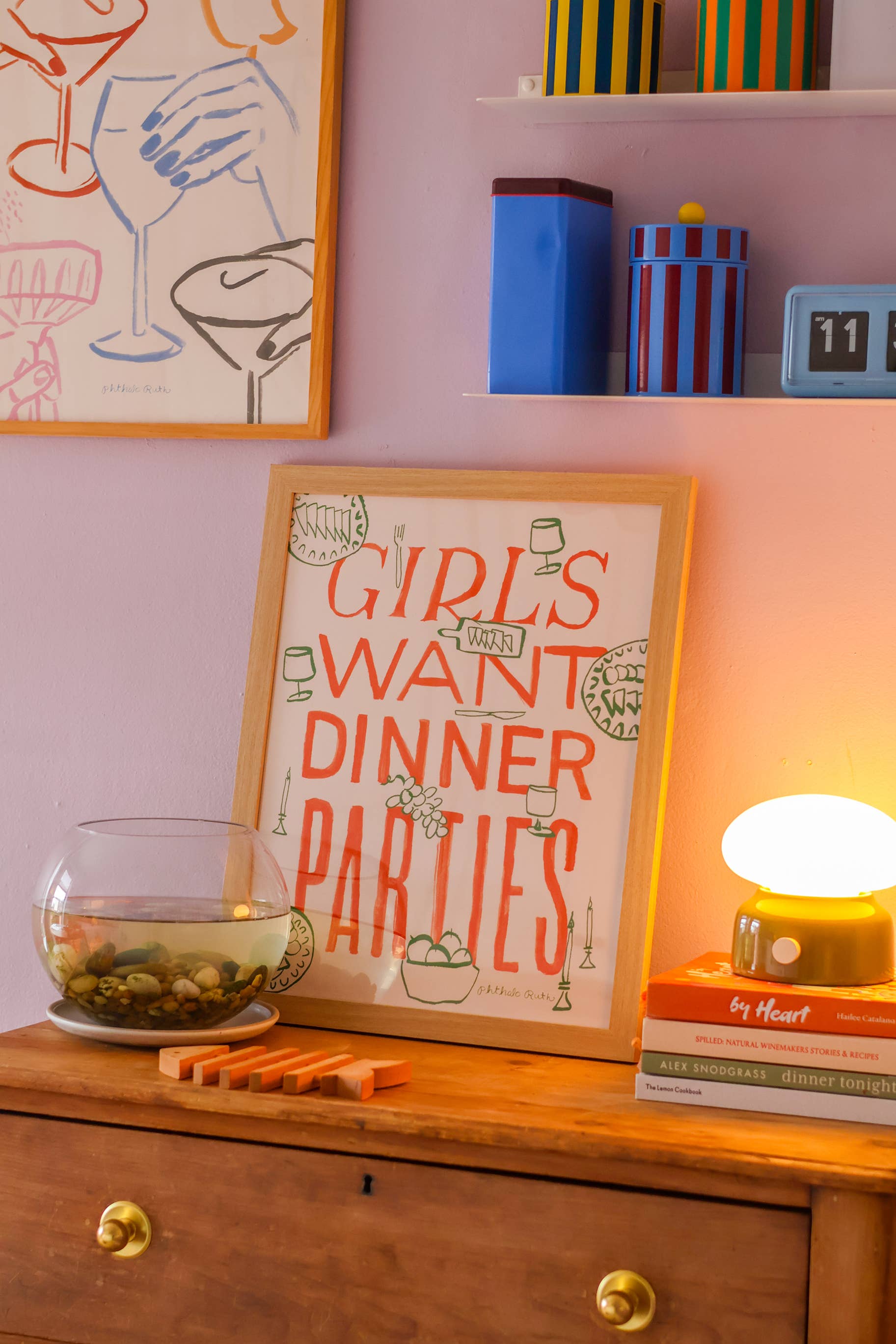 For the hostess with the mostest! Celebrate the joy of dinner parties with our Girls Want Dinner Parties art print. Featuring a hand-painted, simple phrase, this playful piece captures the essence of laughter, shared meals, and unforgettable memories. Perfect for dining rooms or entertaining spaces, it adds warmth and fun to any gathering.