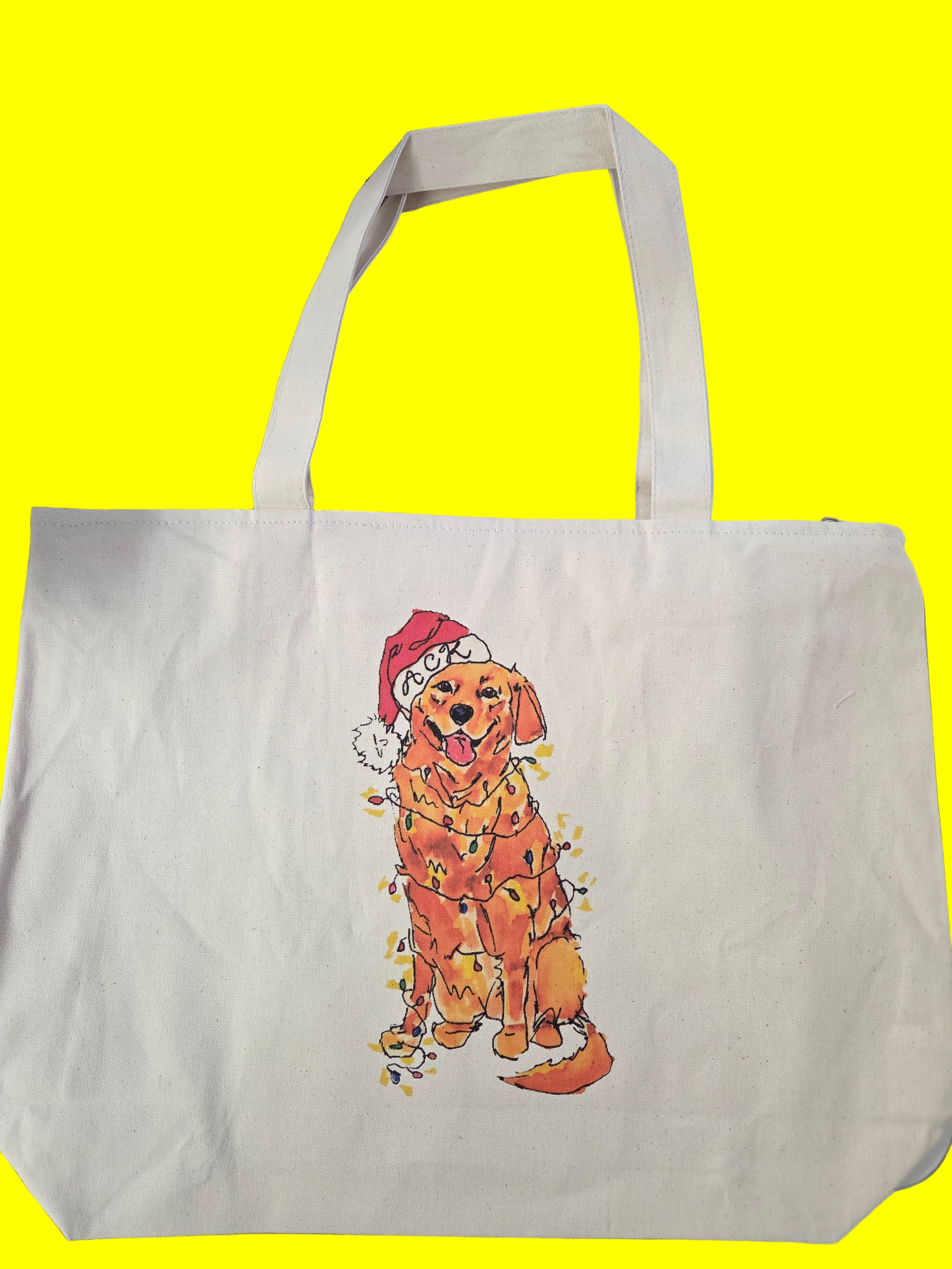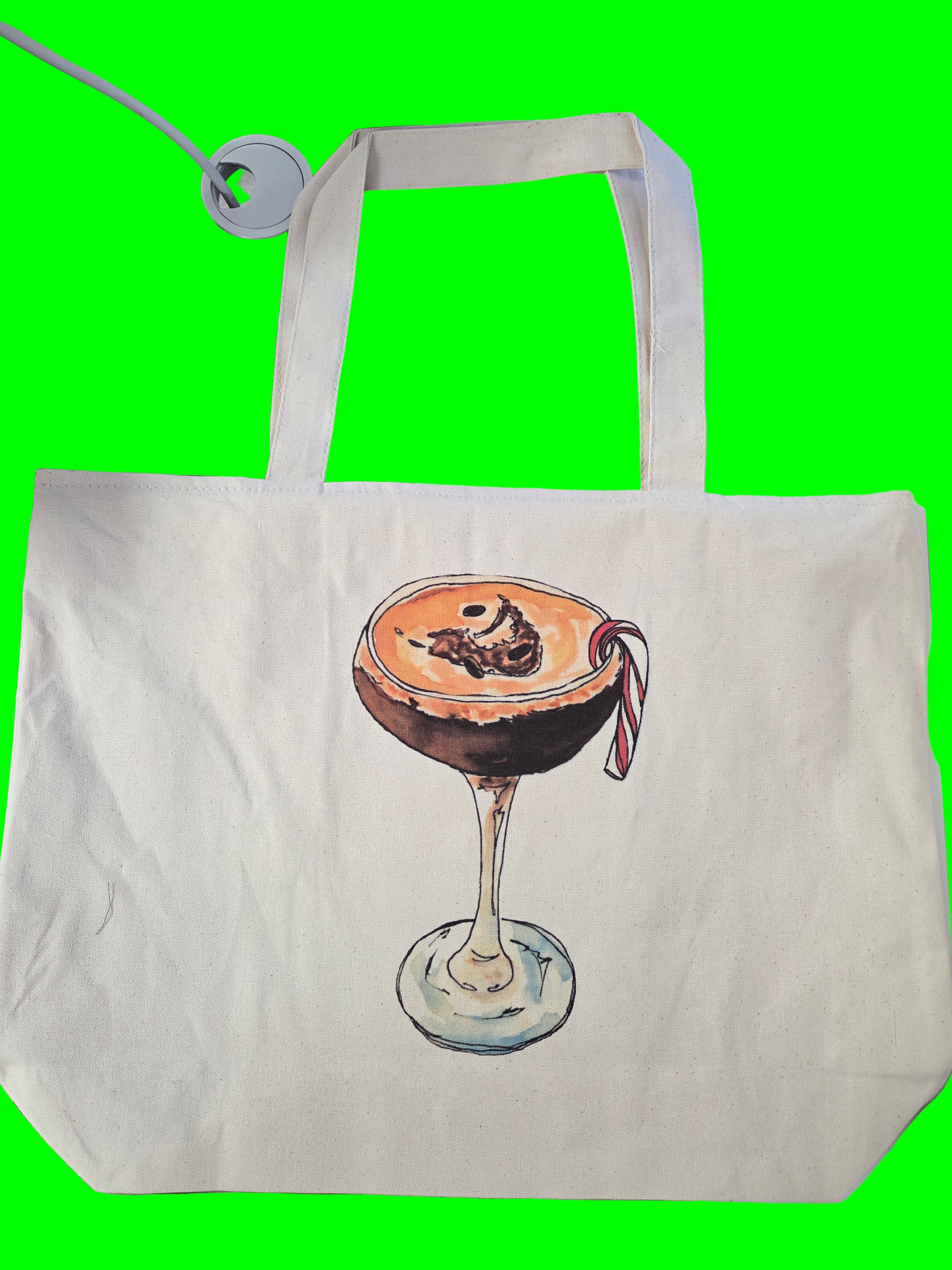 Printed on a durable, zip-top canvas tote, the ACKspresso martini and the Nantucket retriever is made For holiday schlepping.