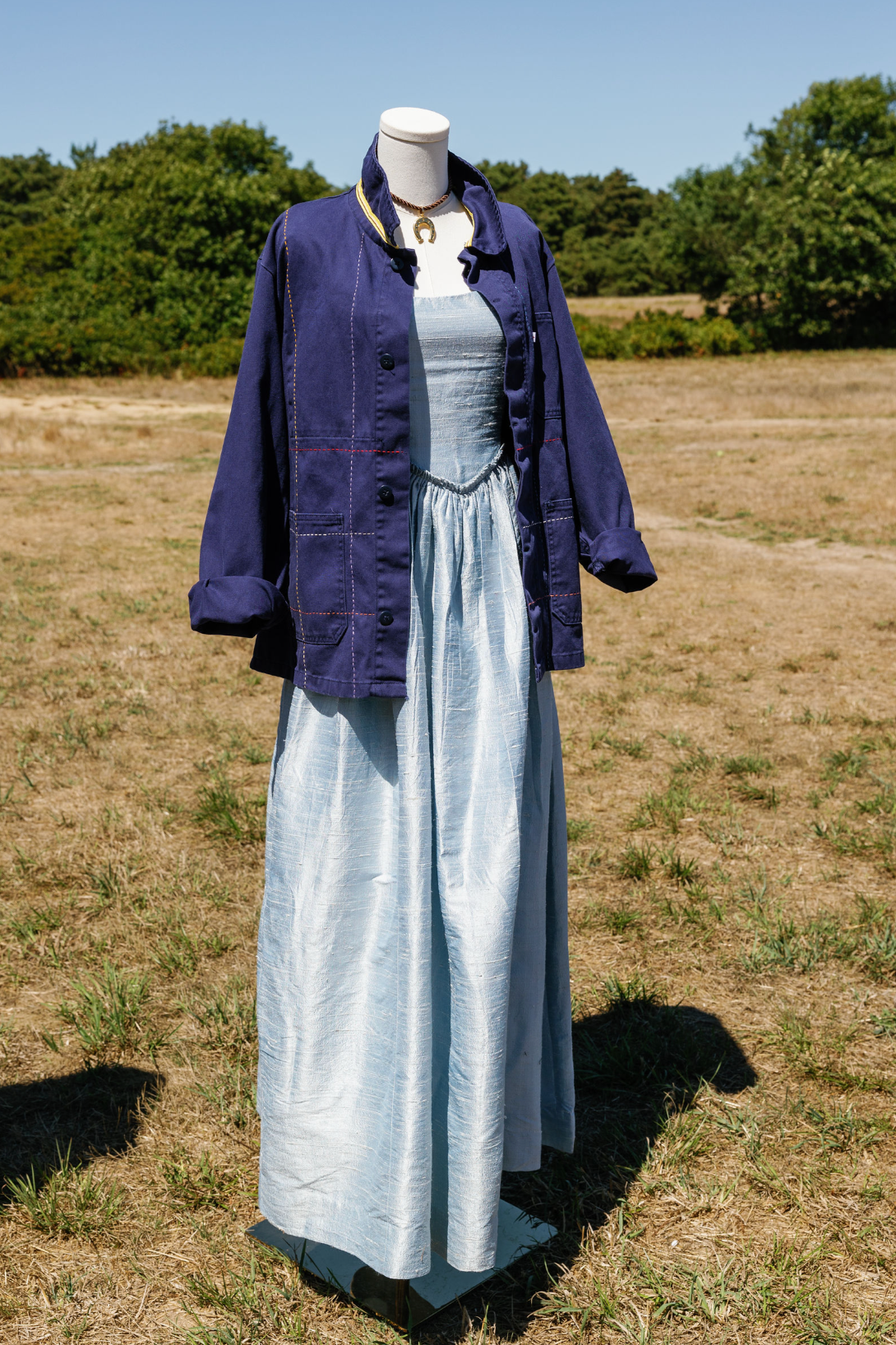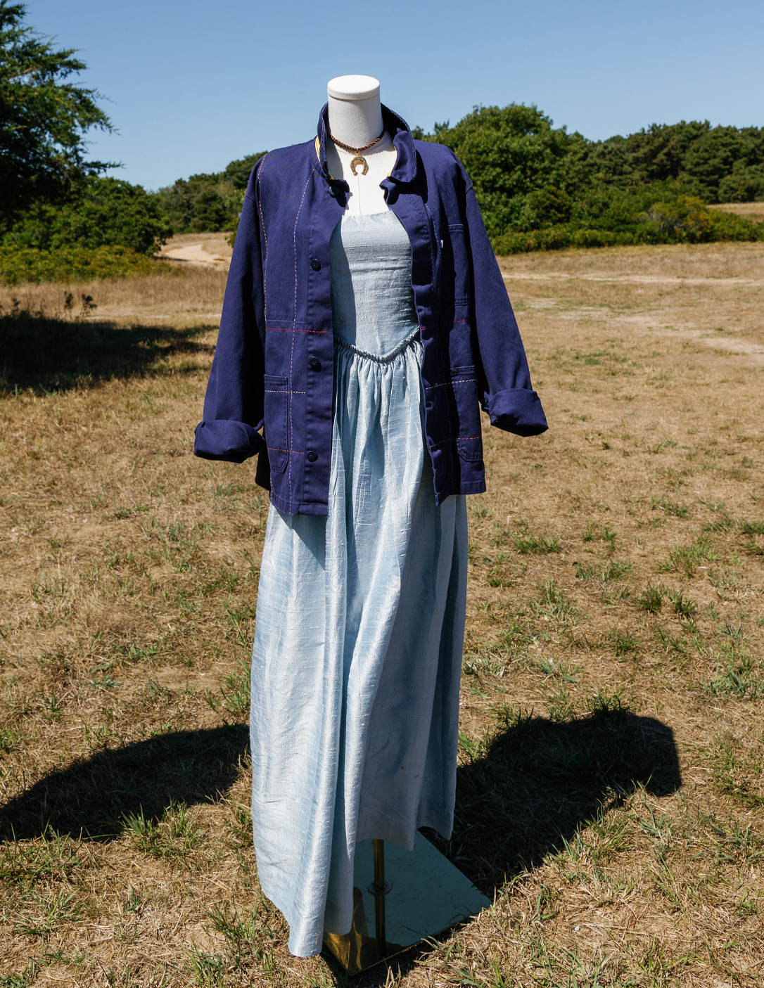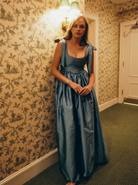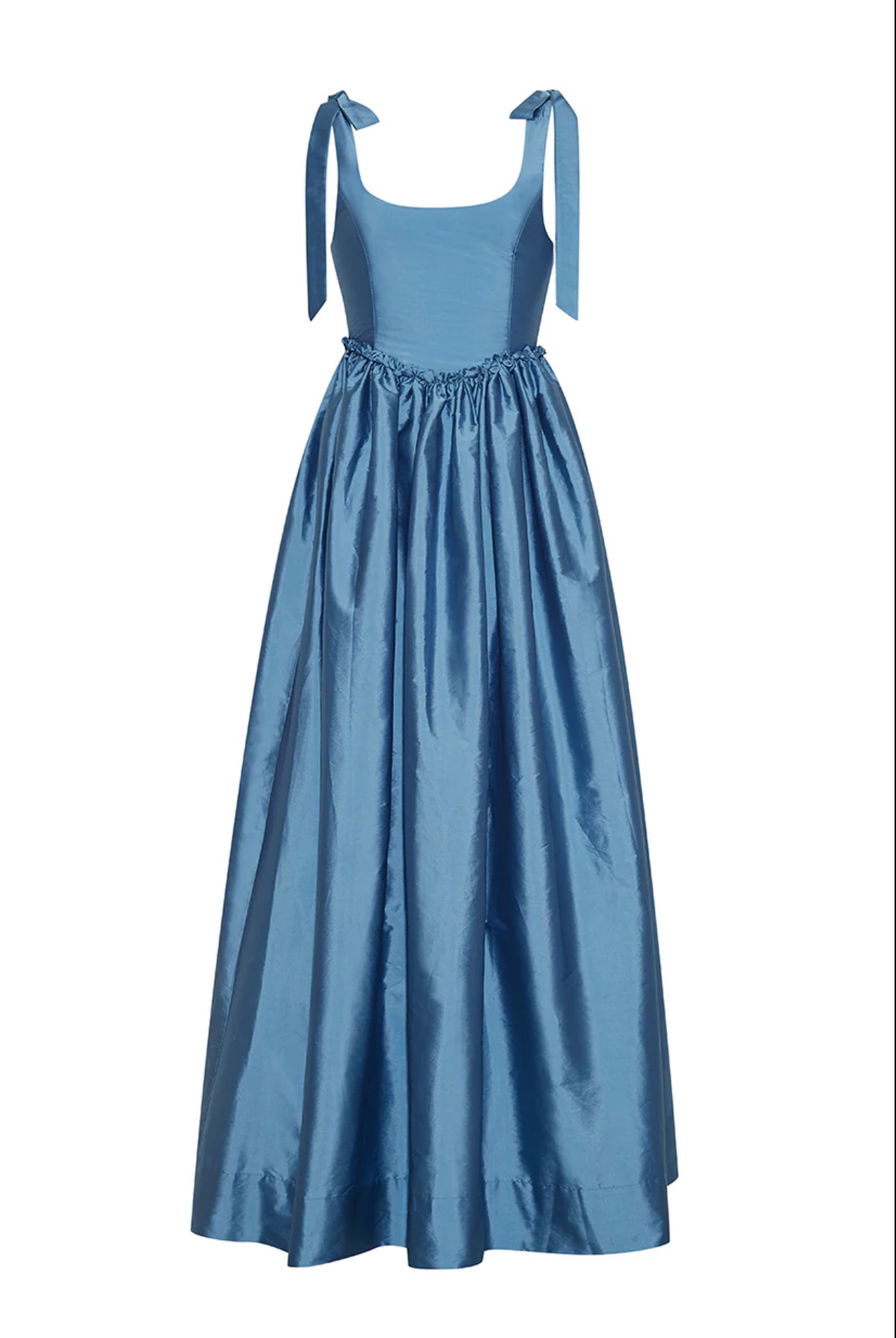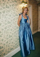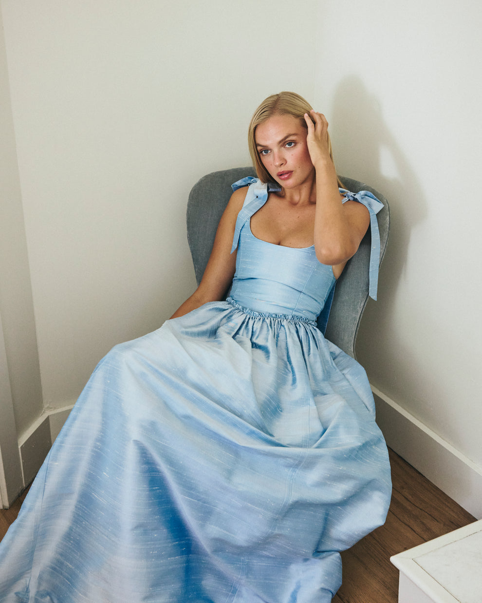 The Marie Dress is our go-to for weddings, parties, and main character moments. In a powder blue shade that feels equal parts classic and playful, the Marie features tie shoulders, a full skirt, and a corset-style back that adjusts to you.