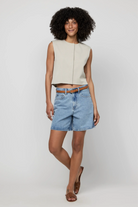 A must-own essential. High-rise long shorts with a zipper fly, finished hem, real pockets, and boxy-structured open leg. Heavyweight denim with a worn-in feel.