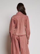 This Nantucket red denim shirt goes from “classic prep” to “cool girl outlaw.” This slim-fit shirt is cut from washed denim with panelled precision and silver snaps. Just structured enough to feel intentional, just easy enough to wear anywhere.