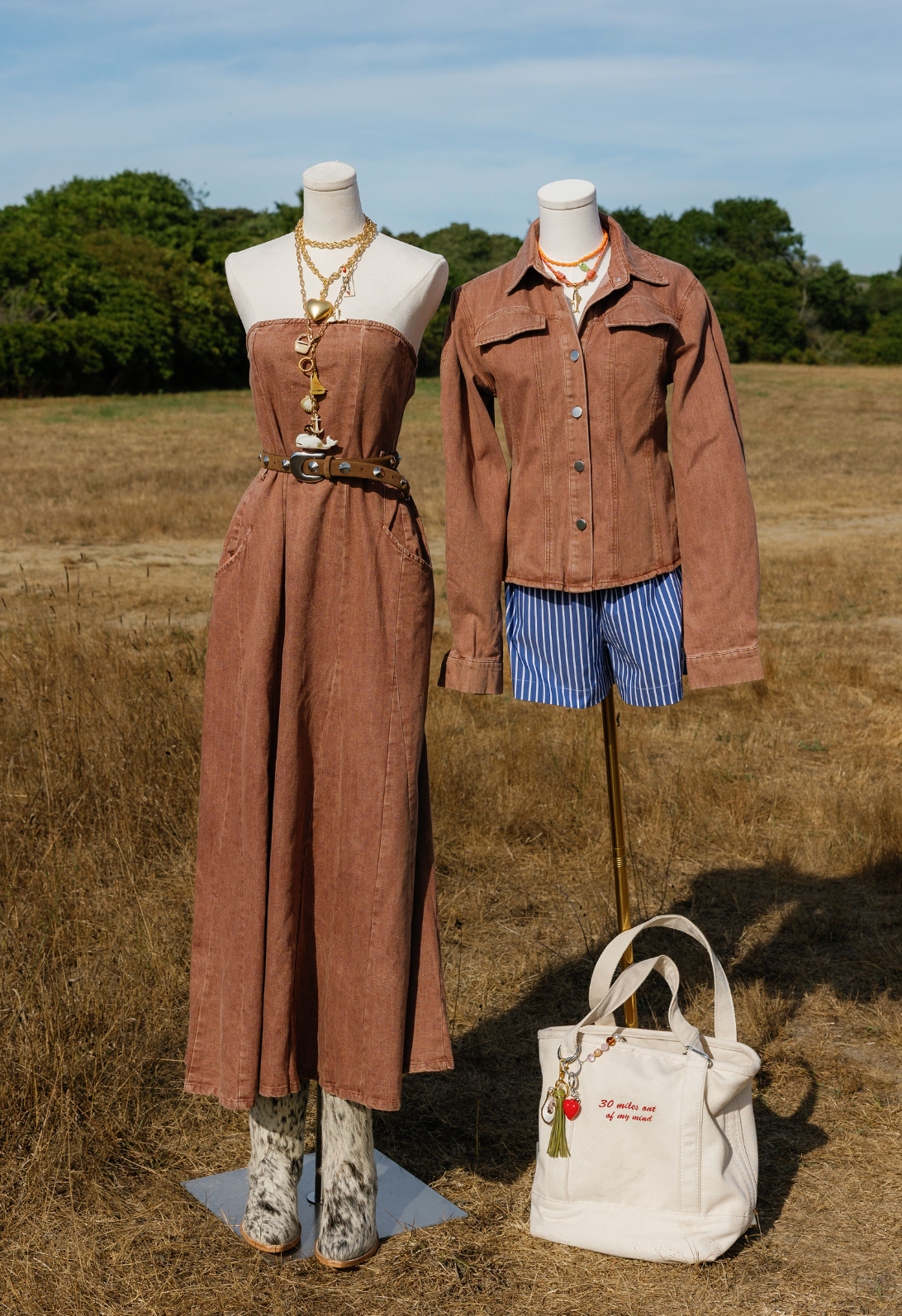 Tailored silhouette in "Nantucket red" denim