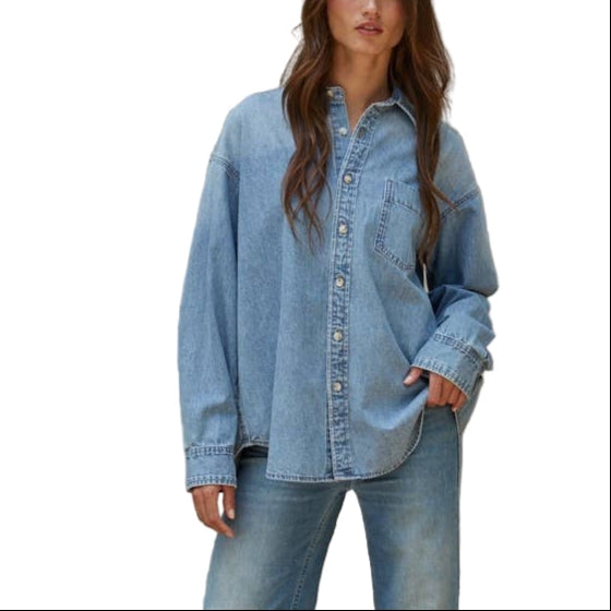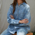 A denim shirt is For Now's fall uniform staple, and this one is done right. Relaxed but structured, the Dionis pairs classic details with a modern oversized fit that makes it instantly cool.