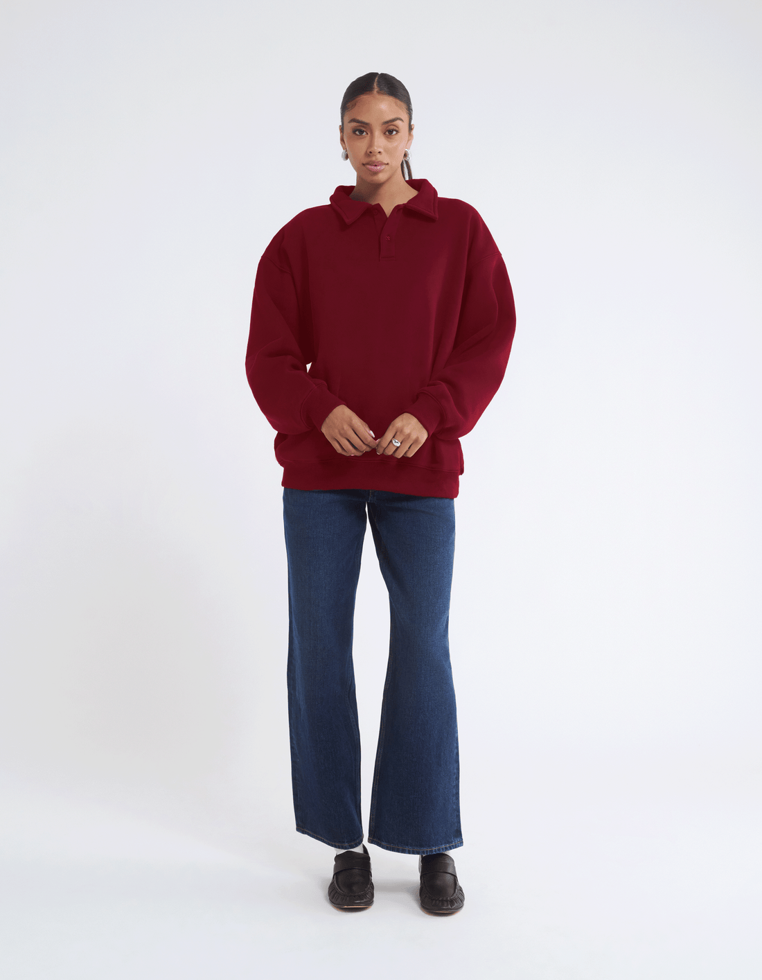Inspired by vintage menswear and classic fleece pullovers, this oversized layer feels like something you stole from his closet—and never have to give back. The kind of sweatshirt you toss on for early morning flights, long drives, or lazy Sundays spent doing nothing at all.