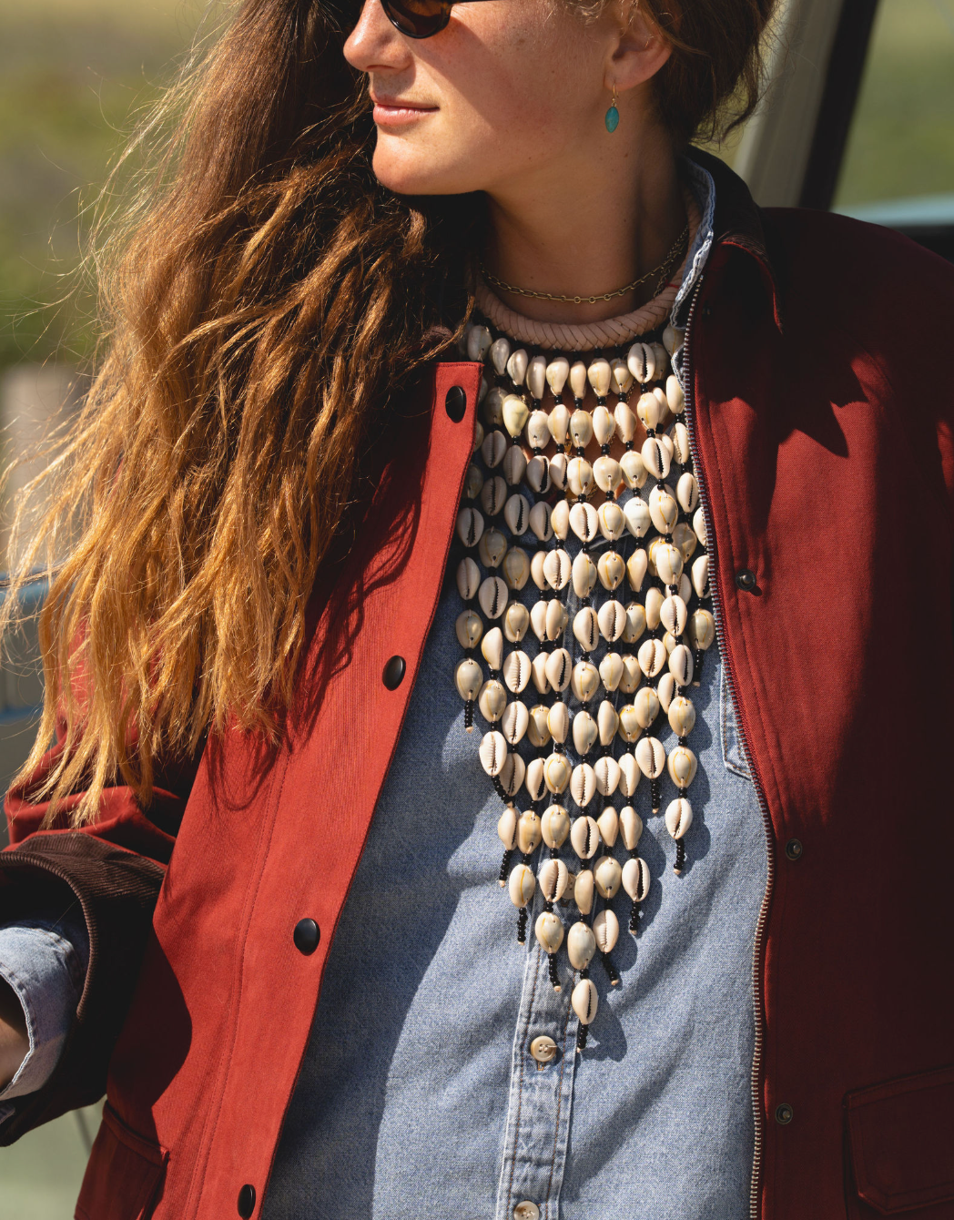 Inspired by windswept shores and the changing tide, this striking yet lightweight necklace feels at home on crisp Nantucket afternoons — layered over cozy knits, styled with barn jackets, or carried into evenings by the fire.