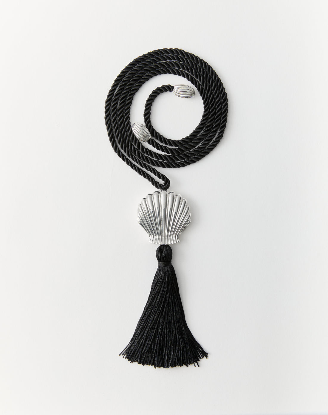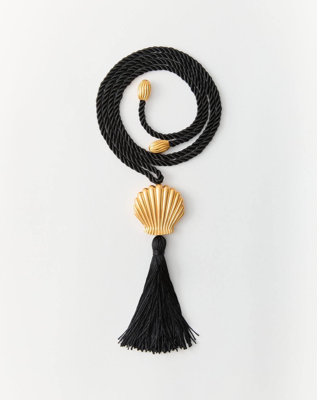 Meet the Éze Necklace. Inspired by the effortless allure of the French Riviera, this sculptural piece is designed to move seamlessly from sun-drenched days to summer evenings. It features a sterling silver–plated brass shell pendant on a statement cord that adjusts for versatile styling — wear it long, or double-wrap for a closer fit.