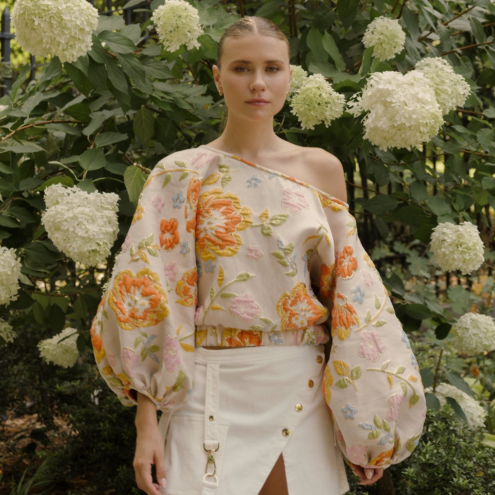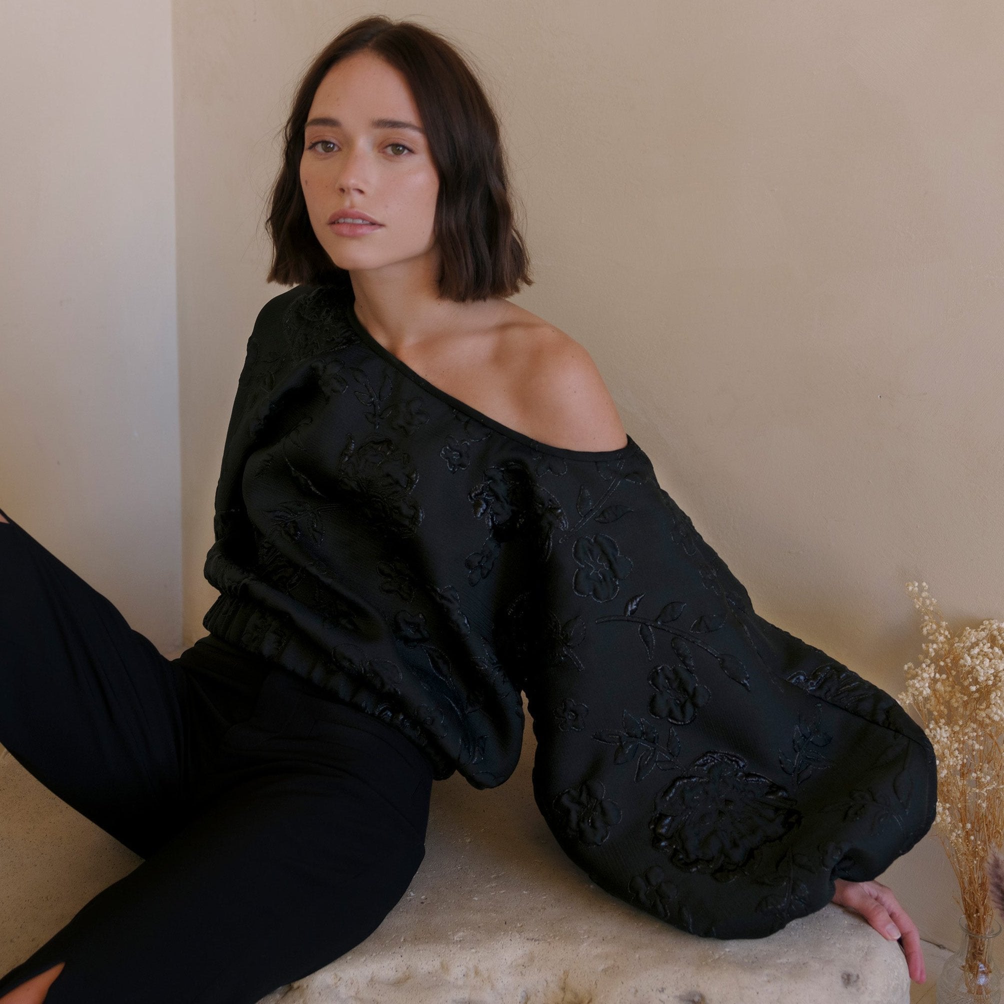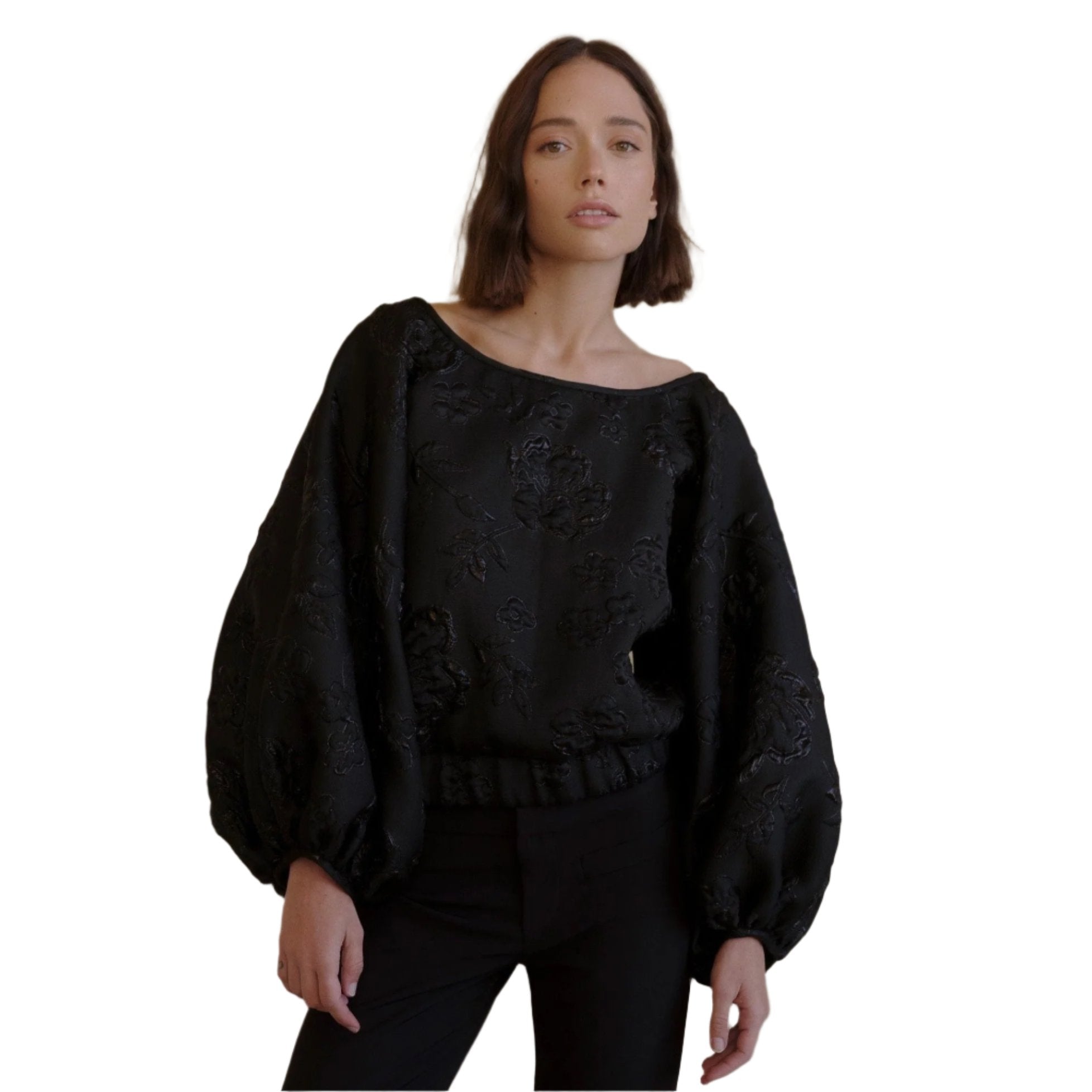 Talk about making a Statement! We turned our iconic Good Luck Dress into a Top and Just WOW! Featuring Dramatic Oversized Sleeves and Elastic Waistband. So Many Styling Options!