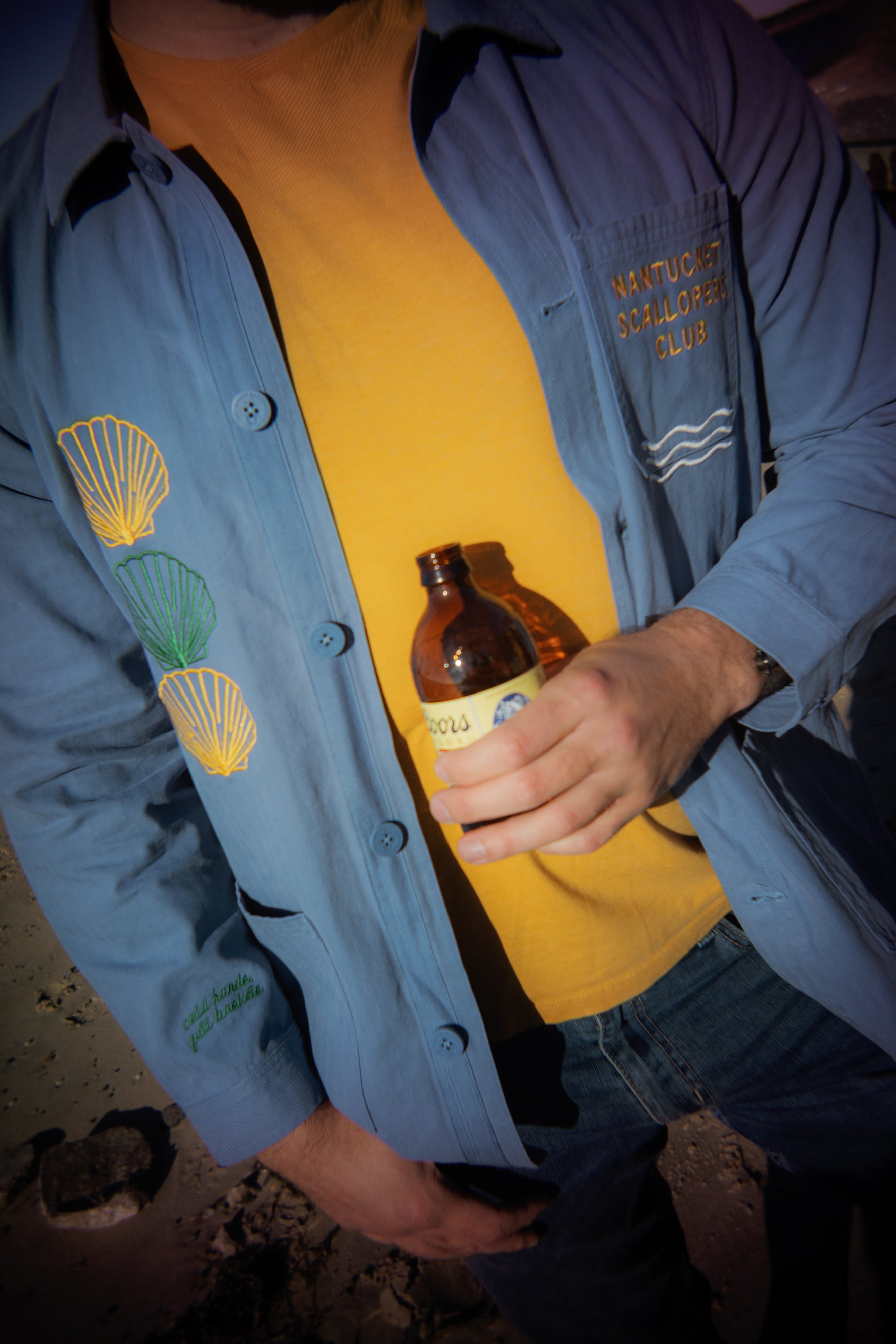 Hand-numbered at the hem, these limited-edition chore jackets nod to East Coast workwear and to one of the island’s oldest rituals. The sleeve carries an insider’s motto—“Cold Hands, Full Baskets”—a tribute to mornings out at Pocomo.