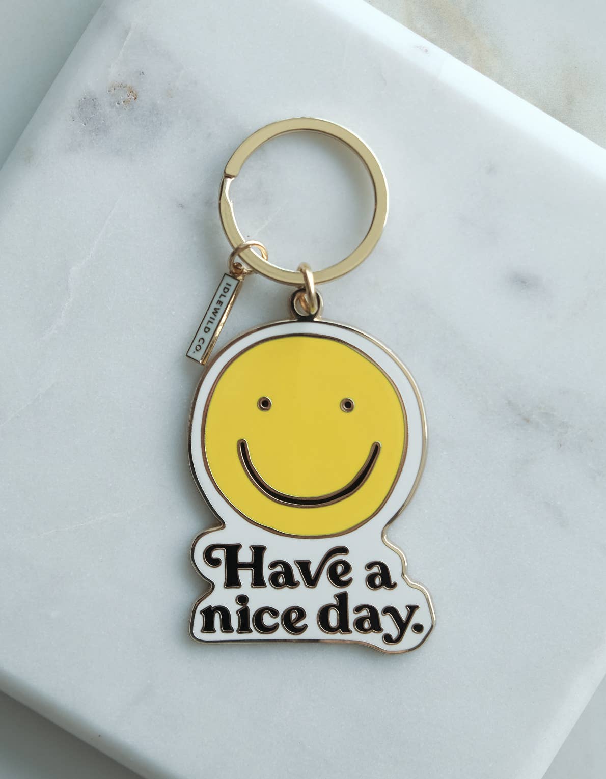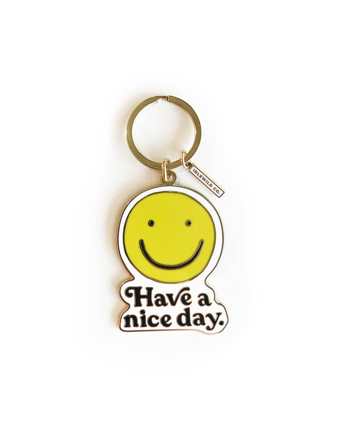 Keychain, Brass Keychain, Enamel Keychain, Smiley Face, Happy, Have A Nice Day, Yellow, Accessory, Gift, Colorful, Idlewild Co., Idlewild, gift ideas, hostess gift, housewarming gift, housewarming, home decor, easter, key ring, key ring holder, motivational gift