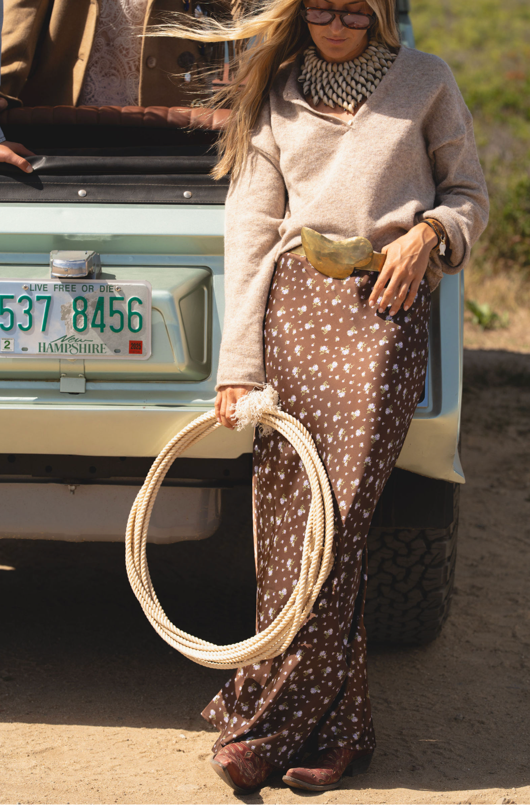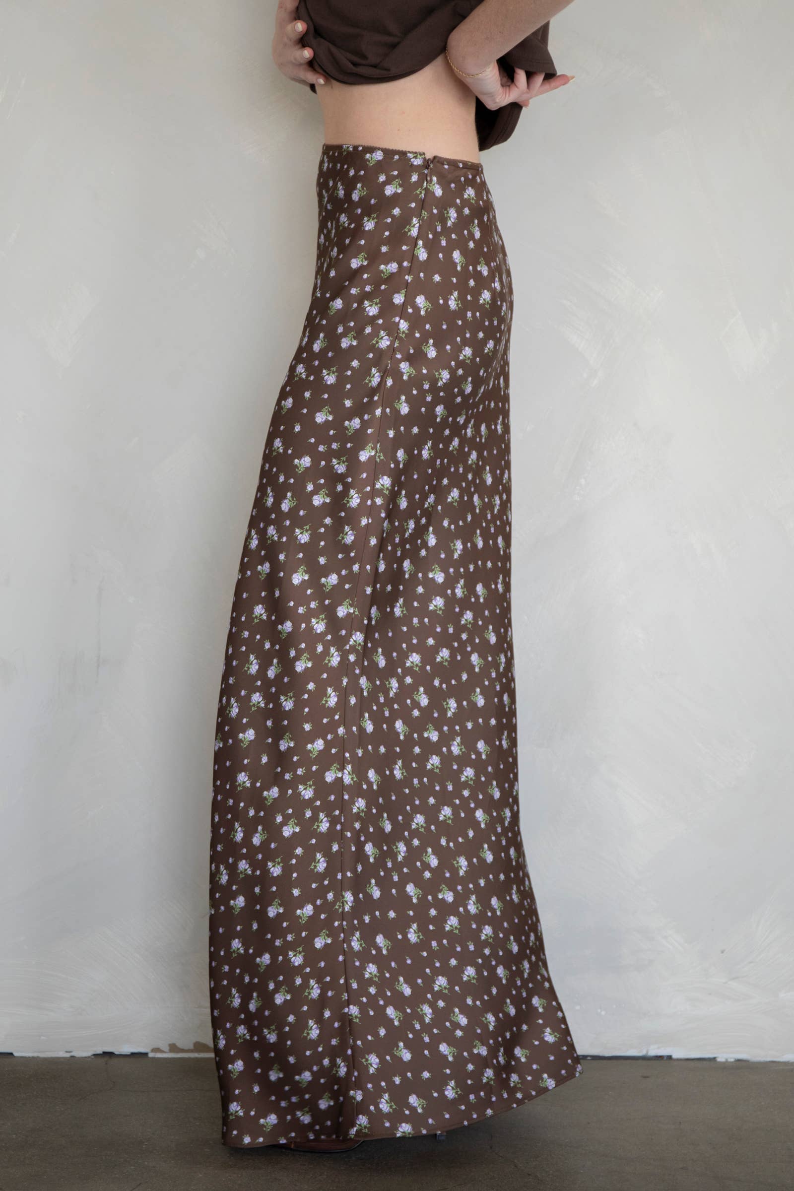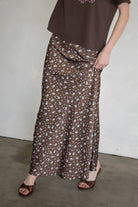 Sweet and silky with just the right amount of shine. This floral-printed satin maxi skirt features delicate blooms across a satin fabric that moves beautifully with every step. Cut with a flattering high waist and a soft flare, it’s a versatile piece that feels as effortless with a tee and sandals as it does dressed up for weddings, dinners, or nights out.