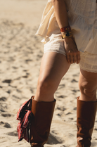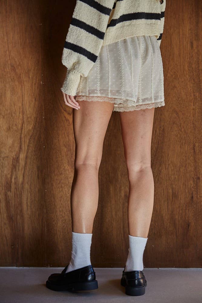 Equal parts flirty and laid-back, these vintage-y shorts are finished with lace trim and a sweet ribbon bow. Wear on lazy mornings with a sweater and nights out with boots and a jacket.