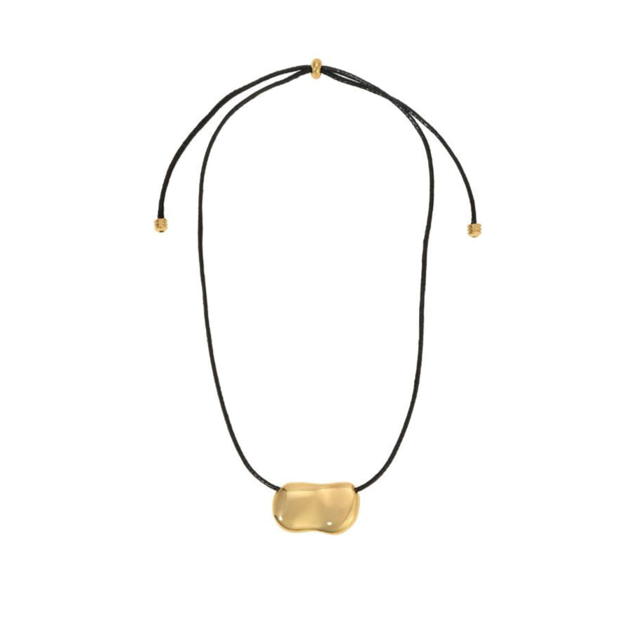 Introducing the newest Pebble Necklace - gold or silver pendant on black leather chord.