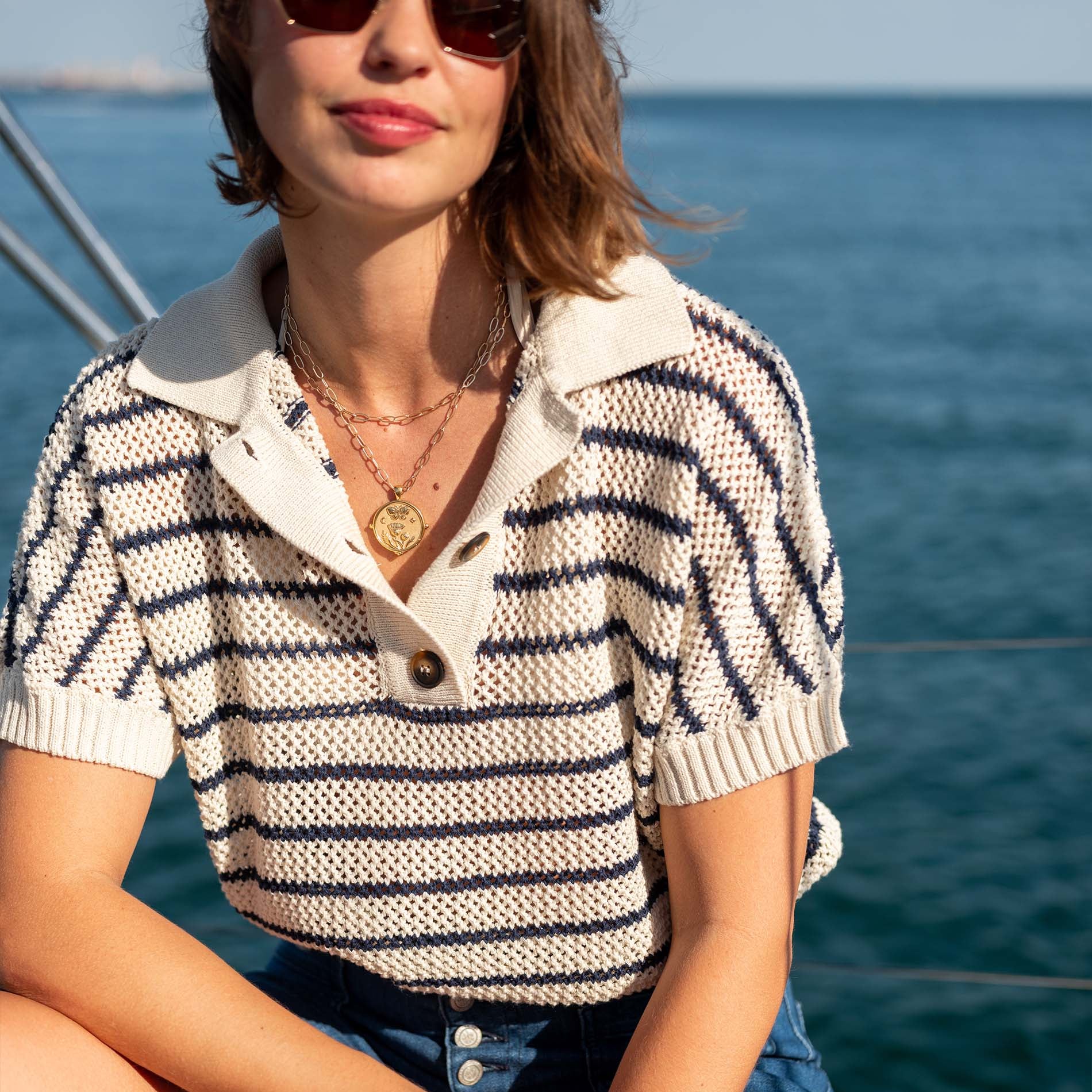 Crochet season is here. The Lombard Crochet Polo is an open knit, v-neck sweater with a soft collar and buttons—a relaxed, sophisticated style perfect for sunny weather. Pair it with jeans, over a swimsuit or with shorts to look and feel coastal.